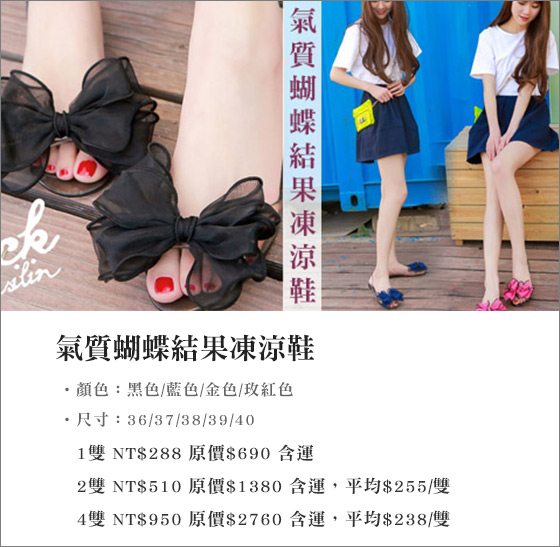 | 其他資料列表: 1.www.17life.com/477/bb3b27a2-ccce-4e11-8ae1-a04d4b7858c5?rsrc=GL_web 氣質蝴蝶結果凍涼鞋-浪漫大蝴蝶結打造柔美女性風情,防水材質適合雨天穿,讓您不用穿厚重雨靴,腳ㄚ子透氣舒適且時尚 ... 2.... 17life 3.4折! - 氣質蝴蝶結果凍涼鞋. 3.厚底涼鞋/楔型涼鞋,涼鞋/拖鞋|涼鞋-mit氣質蝴蝶結透視楔型涼鞋【xp6637】 法式甜美風 可愛必備款 4.www.55555.tw/product/627527 平均每雙最低只要238元起(含運)即可購得氣質蝴蝶結果凍涼鞋1雙/2雙/4雙,多色多尺寸任選。。原價690元,現在特價只要3.4折! 5.夾腳涼鞋/羅馬涼鞋,涼鞋/拖鞋|拖鞋涼鞋LoVie韓版小清新純色氣質蝴蝶結珍珠裝飾編織感平底鞋涼鞋拖鞋【02S4250】